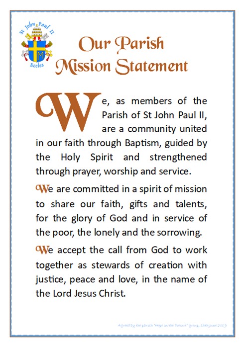 The parish of St John Paul II was formed on 29th November 2018 from the amalgamation of the former parishes of Holy Cross, St Matthew and St Gilbert, Eccles, and St Mary, Eccles, and is a part of the Roman Catholic Diocese of Salford. Our boundaries encompass Eccles, Barton Moss, Barton upon Irwell, Brookhouse, Monton, Patricroft, Peel Green, Winton and parts of Worsley.
